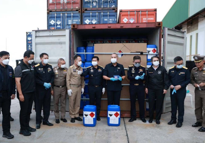 🎥| Autoriteiten onderscheppen 22 ton acetylzuur in de diepzeehaven van Laem Chabang, vermoedelijk bestemd voor drugproductie