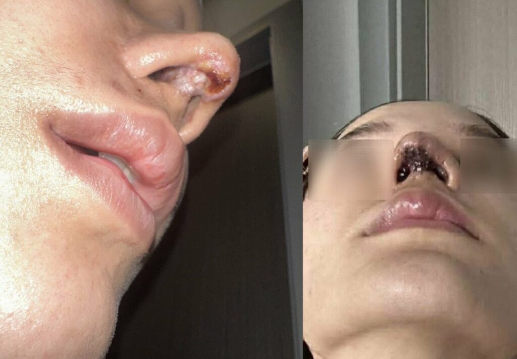 BANGKOK: De 25-jarige influencer Khun B heeft hulp gezocht nadat zij naar eigen zeggen een ernstige infectie opliep na een revisie van haar neus in een groot cosmetisch ziekenhuis in centraal Bangkok. Voor de ingreep, waarbij een eerder silicone-implantaat werd vervangen door ribkraakbeen, betaalde zij 400.000 baht.