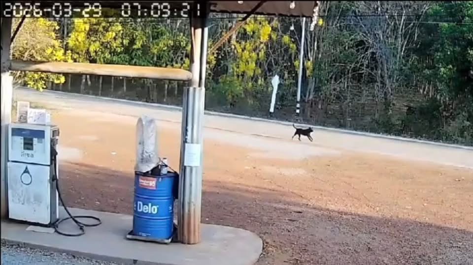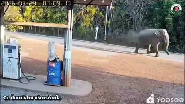Een beveiligingscamera legde het hele schouwspel vast bij de grens van Chachoengsao en Sa Kaeo. De VIDEO, die al snel op een lokale pagina circuleerde, laat zien hoe de olifant rustig het bos verlaat en de weg op wandelt bij een benzinestation, rond 7:09 uur. Dit is vrij bijzonder, omdat olifanten meestal niet overdag te zien zijn.