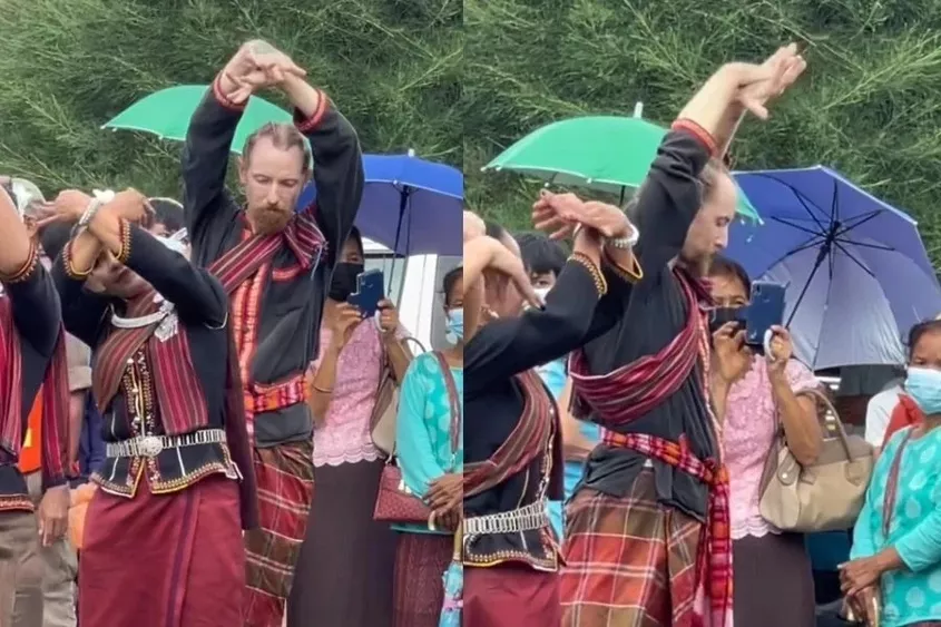 De Thaise TikToker Ryansdiary plaatste een video van de 36-jarige Amerikaan Scott Spyway die deelnam aan de parade met verschillende vrouwen uit Issan. De video laat zien dat Spyway heel voorzichtig is met elke stap van de dans.
