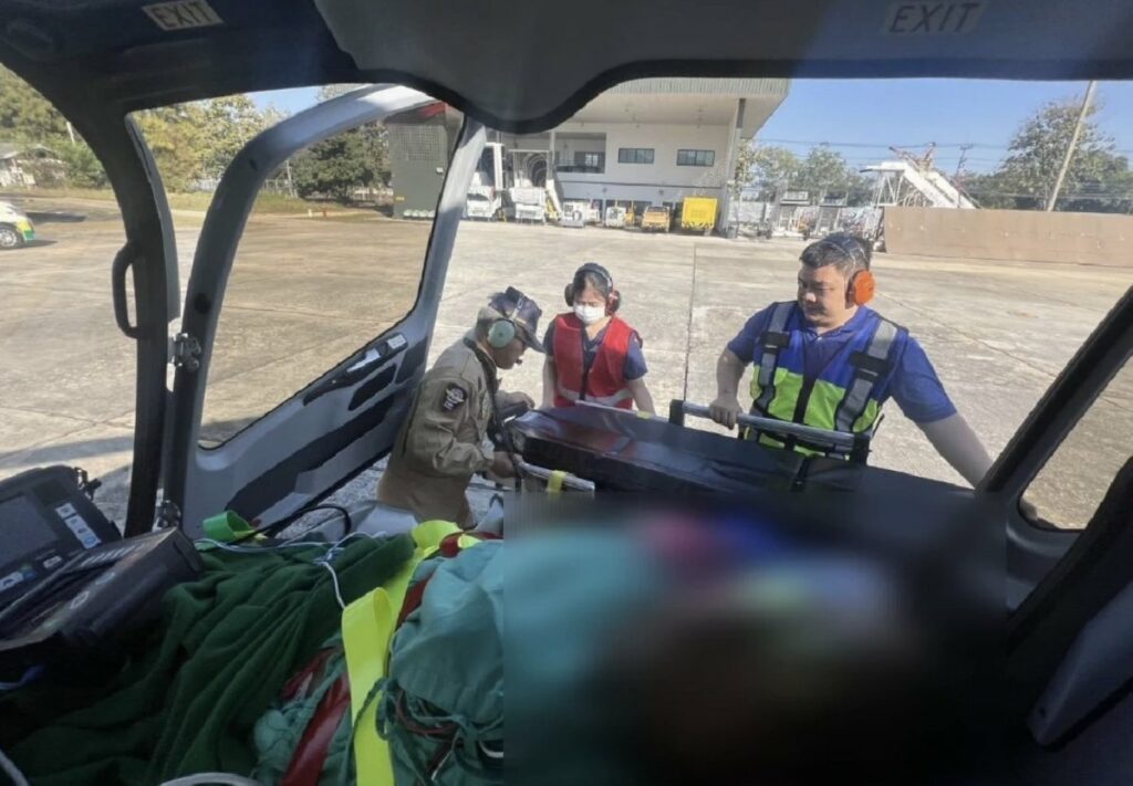 CHIANG MAI: Een 63-jarige man met ernstige gezondheidsproblemen is succesvol per luchtambulance naar specialistische zorg overgebracht. Deze operatie, geprezen door vicepremier Suchart Chomklin, vond plaats tijdens de drukke nieuwjaarsvieringen en duurde slechts 95 minuten van het district Li in Lamphun naar het Maharaj Nakorn-ziekenhuis in Chiang Mai.