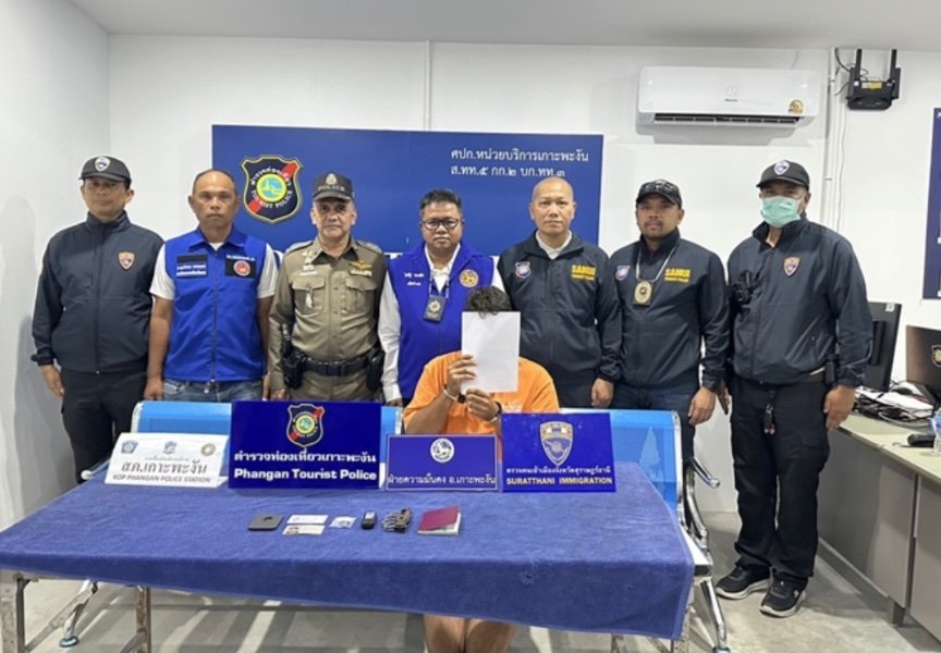 KOH PHANGAN: Een Duitse man, die gezocht werd voor een gewelddadige overval, is op Koh Phangan in de kraag gevat na een verkeersincident. De 22-jarige Sugru Yusaf Onganer werd opgepakt na een melding aan de toeristenpolitie over zijn opvallende rijgedrag op een grijze Yamaha T-MAX zonder kentekenplaat.