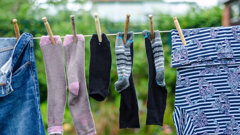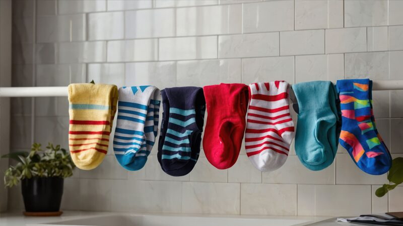 Daarnaast wijst Rossana erop dat binnenstebuiten wassen de wrijving op bedrukte of geborduurde patronen vermindert, waardoor sokken langer meegaan. Voor dikkere sokken die langzaam drogen, is het verstandig om de centrifugeertijd te verlengen en de sokken in vorm te brengen voordat ze worden opgehangen. Dit voorkomt dat de elastische band zijn vorm verliest.
