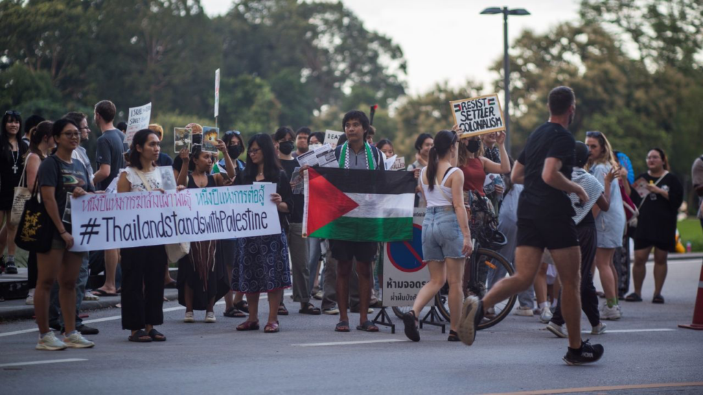 Op de Facebook-pagina van PSC Thailand werd eerder deze week aangekondigd dat er van 14.00 tot 16.00 uur bij de Israëlische ambassade een bijeenkomst gepland staat, omschreven als een actie tegen “VS-Israëlische agressie.” PSC Thailand profileert zich als een onafhankelijke, niet-gouvernementele en niet-partijpolitieke organisatie met zowel Thaise als niet-Thaise leden.