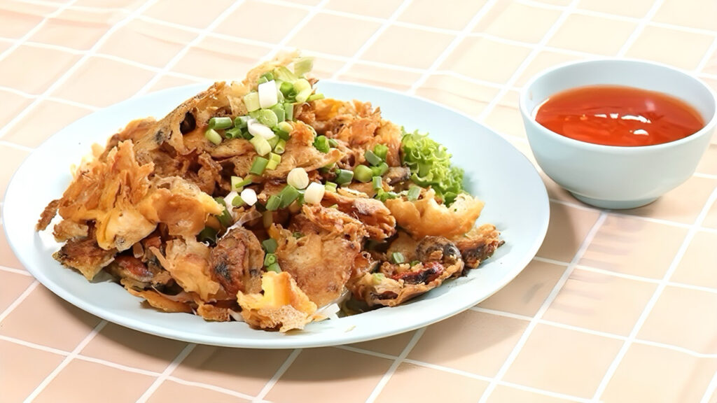 Ei- en bloembeslag met oesters, gefrituurd tot ze krokant zijn; een rijke, hartige en aromatische streetfoodklassieker.
