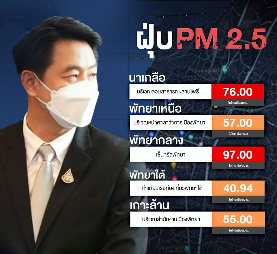 PATTAYA:- De luchtkwaliteit in de gebieden van Pattaya, Banglamung en Sriracha in Chonburi is vandaag als kritiek geclassificeerd, met PM 2.5-deeltjes die de vastgestelde veiligheidsnormen aanzienlijk overschrijden. Om zich te beschermen tegen de schadelijke gevolgen van deze vervuiling, wordt de lokale bevolking dringend aangeraden om mondkapjes te dragen.