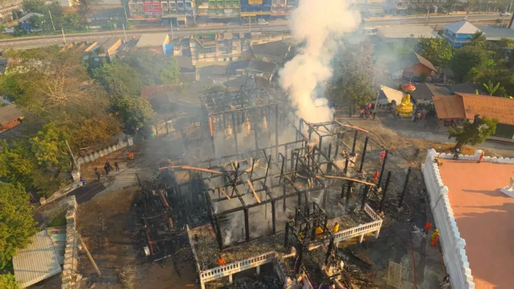 LAMPANG: Och, dit gaat mij toch wel aan het hart. Een abt van de Wat Mon Pu Yak-tempel in Lampang viel ter plekke flauw bij het zien van de schade die het vuur aan zijn eeuwenoude houten monnikenwoning heeft aangericht. Hij kreeg bovendien een epileptische aanval, wat de diepe impact van deze gebeurtenis op de gemeenschap benadrukt.