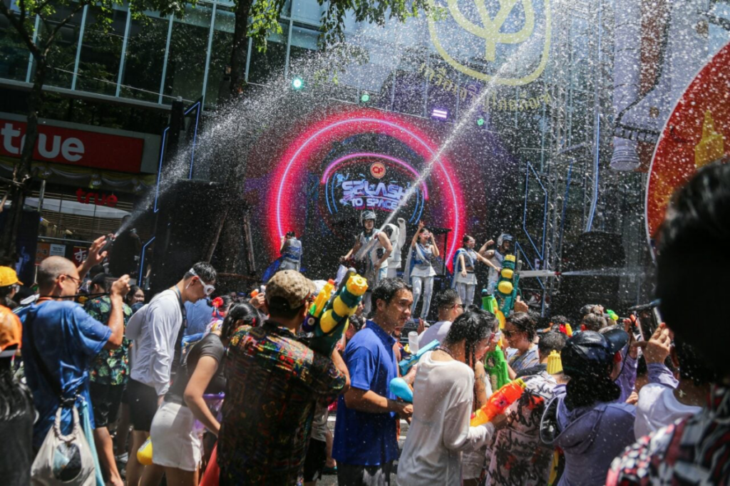 Op Thanon Silom was de sfeer vanaf het middaguur electriserend. De straat tussen de kruispunten Sala Daeng en Narathiwat was tot 20.00 uur afgesloten voor autoverkeer, zodat iedereen tot 21.00 uur veilig van de waterspellen kon genieten. Het evenement duurt tot en met 14 april en vindt dagelijks plaats van 12.00 tot 20.00 uur.