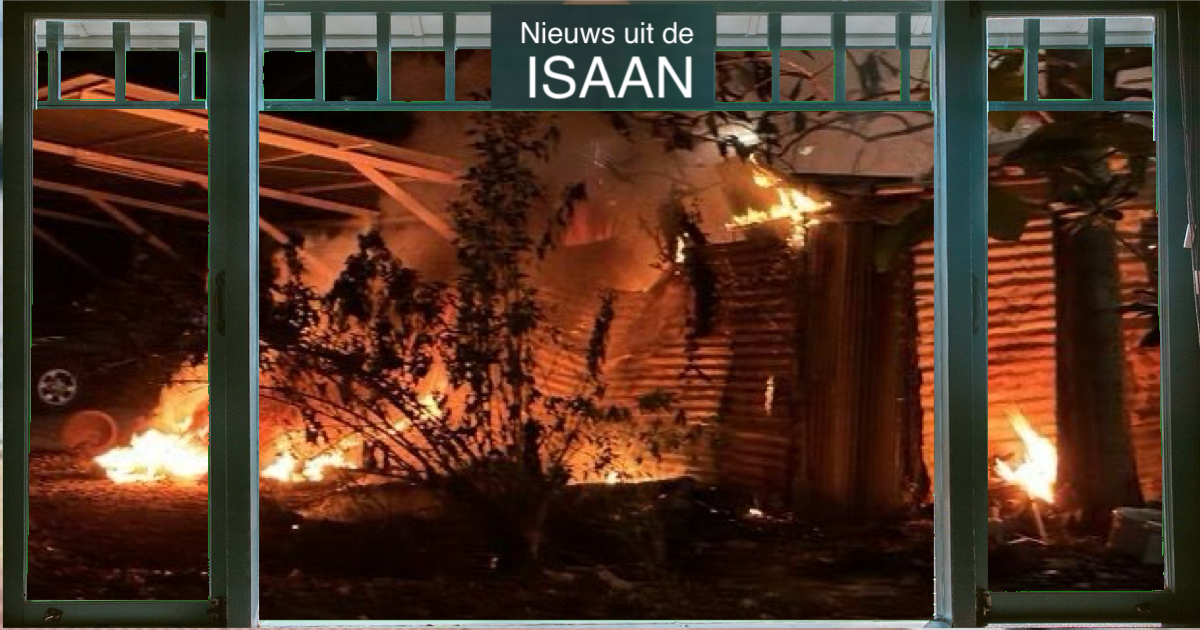 SISAKET:- Een bedrijfsgebouw in de provincie Sisaket ging gisteren vroeg in vlammen op na twee explosieve geluiden die vermoedelijk afkomstig waren van gasflessen. De brand verspreidde zich snel en veroorzaakte chaos toen brandbestrijdingsteams zich haastten om de brand te blussen, die om 04.10 uur begon nabij de Luang Sumangkalaram-tempel.