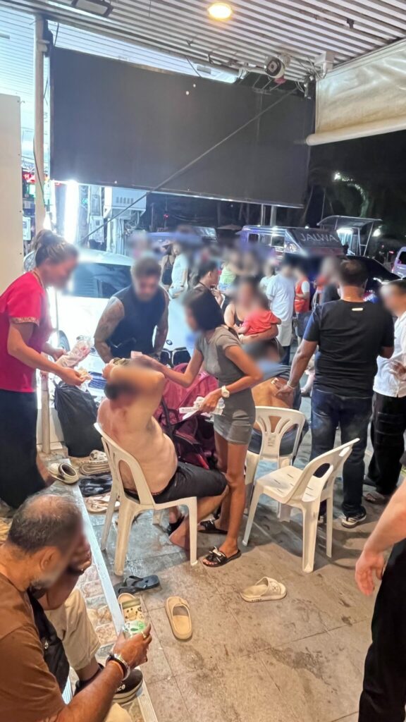 Hulpdiensten van de Sawang Borriboon Dhammasatan Foundation en agenten van het hoofdbureau van Pattaya waren snel ter plaatse. Volgens politiewoordvoerders raakte de witte BMW meerdere personen op de stoep voordat het voertuig tegen een bagageshop tot stilstand kwam. Beelden van bewakingscamera’s tonen dat de auto met aanzienlijke snelheid achteruit reed, terwijl een deur deels openstond.
