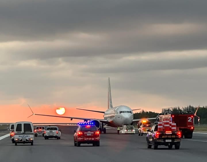 Volgens luchthavenfunctionarissen vond de landing rond het middaguur plaats. De piloten maakten een harde landing; het neuswiel bezweek en kwam vast te zitten in het asfalt, waardoor het vliegtuig niet op eigen kracht kon bewegen. Technici onderzochten nog steeds de oorzaak van de storing.