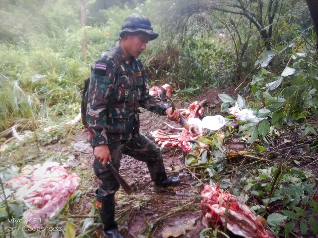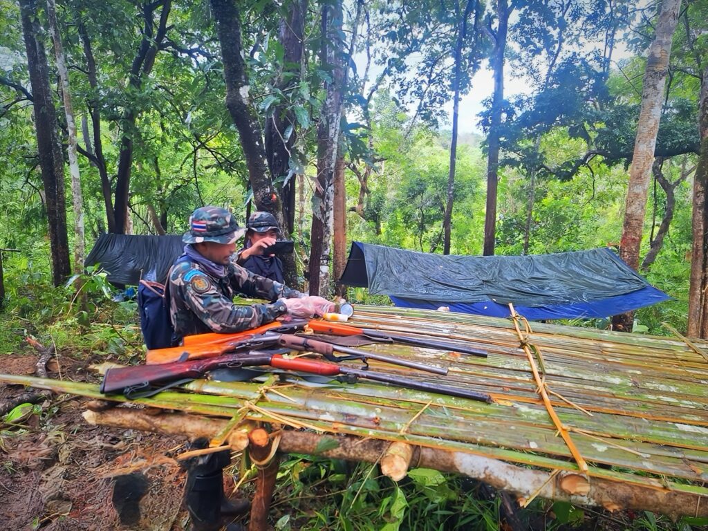 Khun Piyapong Suebsen, die het oostelijk beschermingsgebied leidt, zei dat het team naar de plek van het incident in Huai Khwa ging. Rond 10:49 uur hoorden ze twee schoten en kort daarna ook het geluid van bamboe dat werd gekapt.