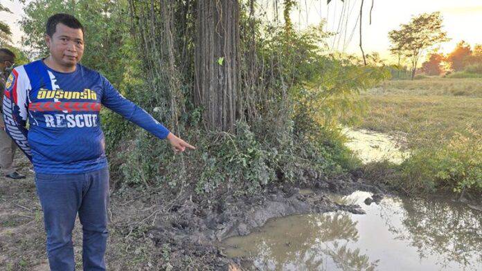 De buffel, “Chao Kong”, werd in de modder aangetroffen en later vastgebonden door dorpsbewoners. Khun Somchit Chinson, 77, had een diepe steekwond in zijn nek en werd ter plaatse doodverklaard. Zijn schoondochter, Khun Phairoh Namkam, 43, werd bewusteloos aangetroffen met meerdere blauwe plekken. Getuigen meldden dat zij kort voor de aanval in het veld waren.