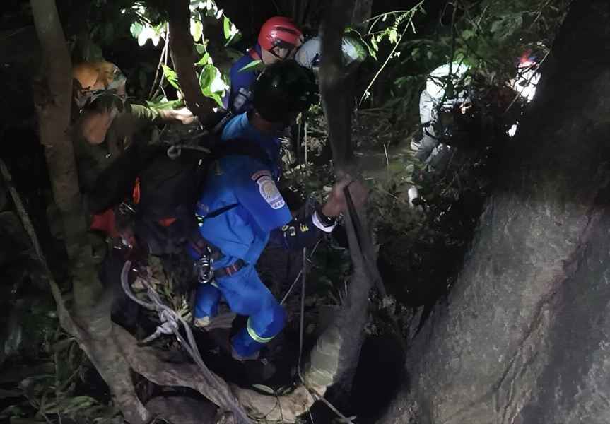 De politie van Patong kreeg een noodoproep binnen en werkte samen met de Kusoldharm Phuket Stichting en het Patong Ziekenhuis. Getuigen zagen hoe de motorrijder de controle kwijtraakte en in het ravijn viel.