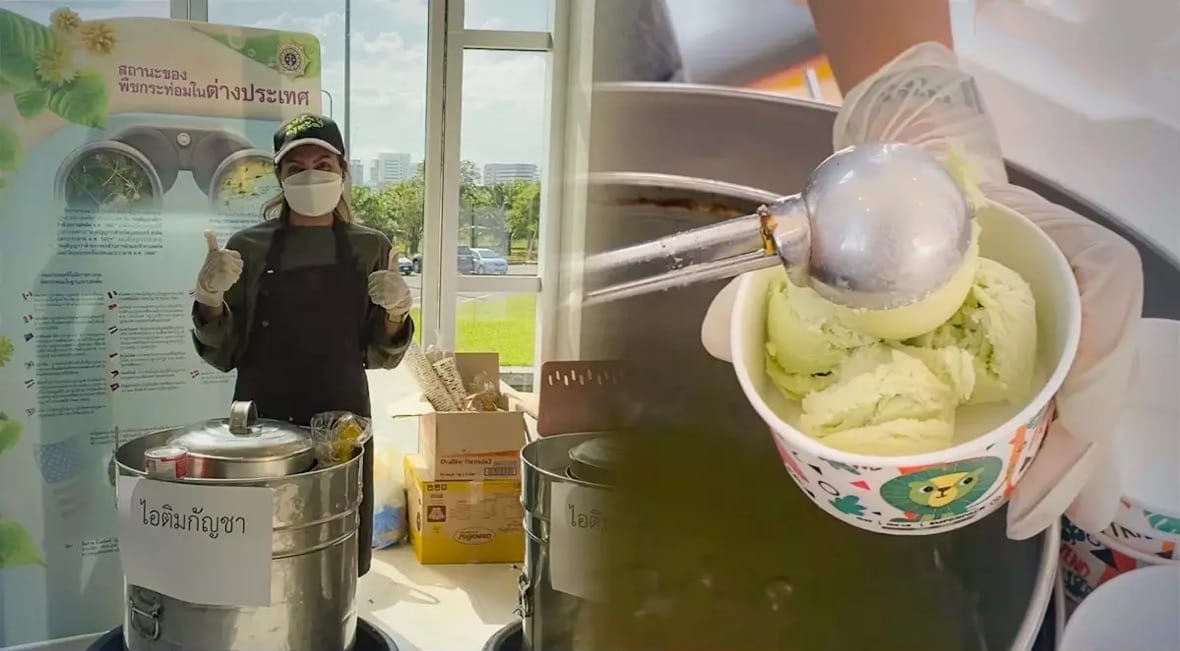 Op een recente beurs waarin producten gemaakt van kratom werden in de Prins van Songkla Universit in het Hat Yai-district in de provincie Songkhla werden gepromoot, verkocht de lokale onderneming haar cannabisijs en kratom-ijs voor 40 baht per bakje en 20 baht voor een bolletje.