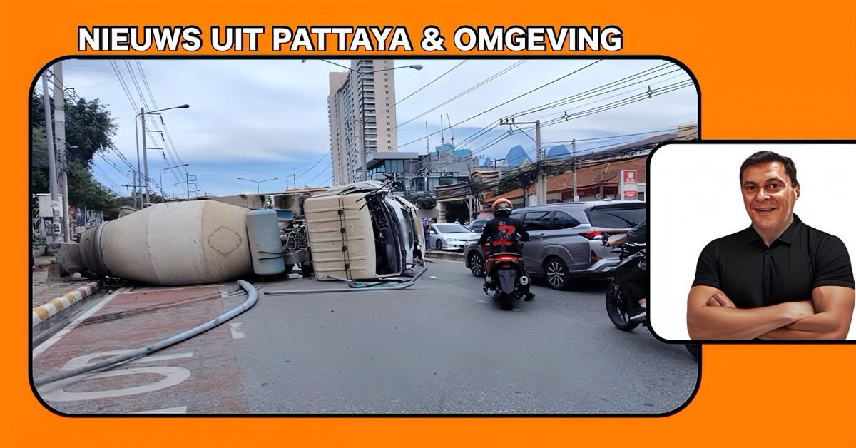 PATTAYA: Een cementwagenchauffeur verloor de controle over zijn voertuig terwijl hij over de stoep reed en sloeg met de wagen over de kop. Dit zorgde voor een enorme verkeersopstopping die kilometerslang aanhield.