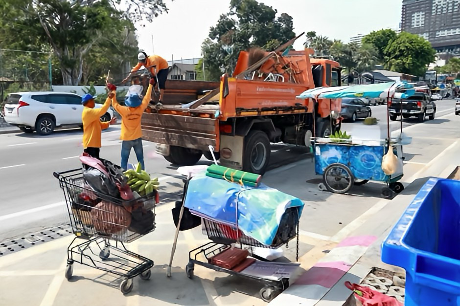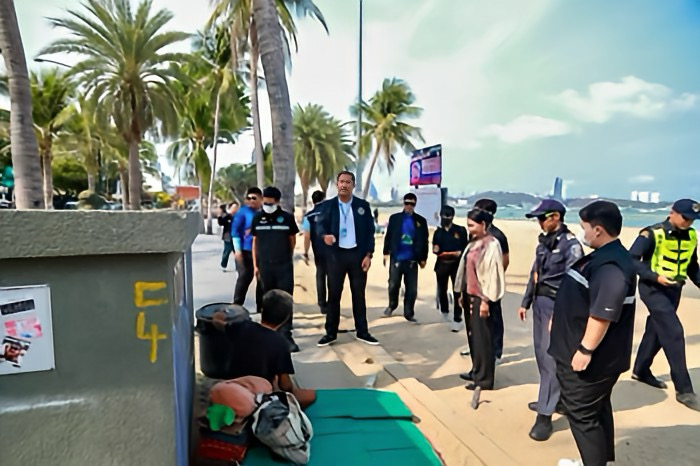 PATTAYA: De badplaats Pattaya heeft dit weekend de hark over het strand gehaald. Onder leiding van viceburgemeester Damrongkiat Pinitchakan trokken ambtenaren en hulpdiensten langs de strandbedjes om daklozen te registreren en waar nodig hulp te bieden, en ja, natuurlijk ook om het straatbeeld op te kuisen.