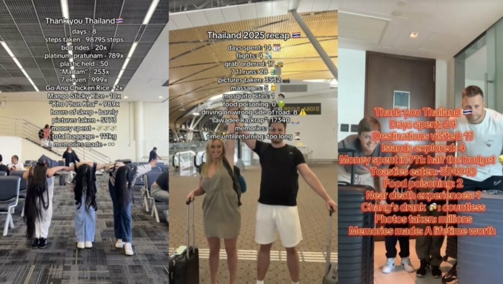 Volgens de Thaise media hebben influencers en vakantiegangers ineens behoefte aan cijferfetisj: dagen in Thailand, stappen op de stappenteller, uitgegeven baht — alles wordt keurig op een rijtje gezet. Sommige mensen tellen zelfs tuk-tuk-ritten, Grab-scores, 7-Eleven-bezoeken en het aantal Thaise massages (één massage = eeuwige dankbaarheid). En ja: porties pad Thai en mango sticky rice worden genoteerd als prestaties.