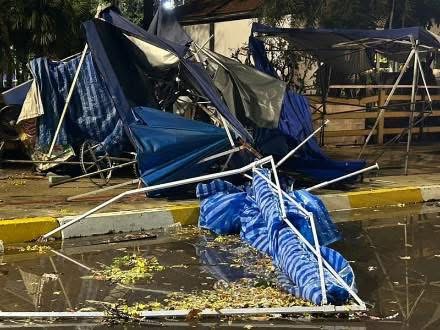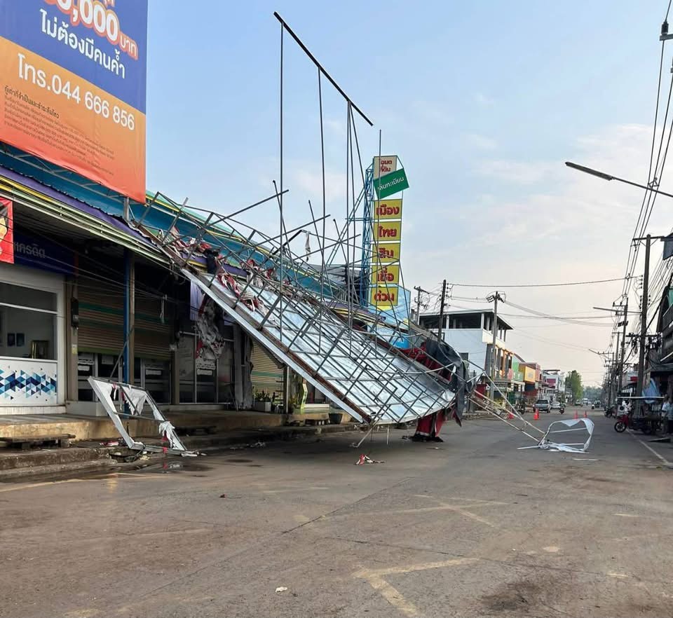 ISAAN: Opeenvolgende zomerse stormen hebben gisteren grootschalige schade aangericht in het noordoosten van Thailand. In Nakhon Phanom raasde een tweede, krachtigere storm in de nacht van 18 april door meerdere districten en trof onder meer een nachtmarkt die nog herstelde van eerdere schade.