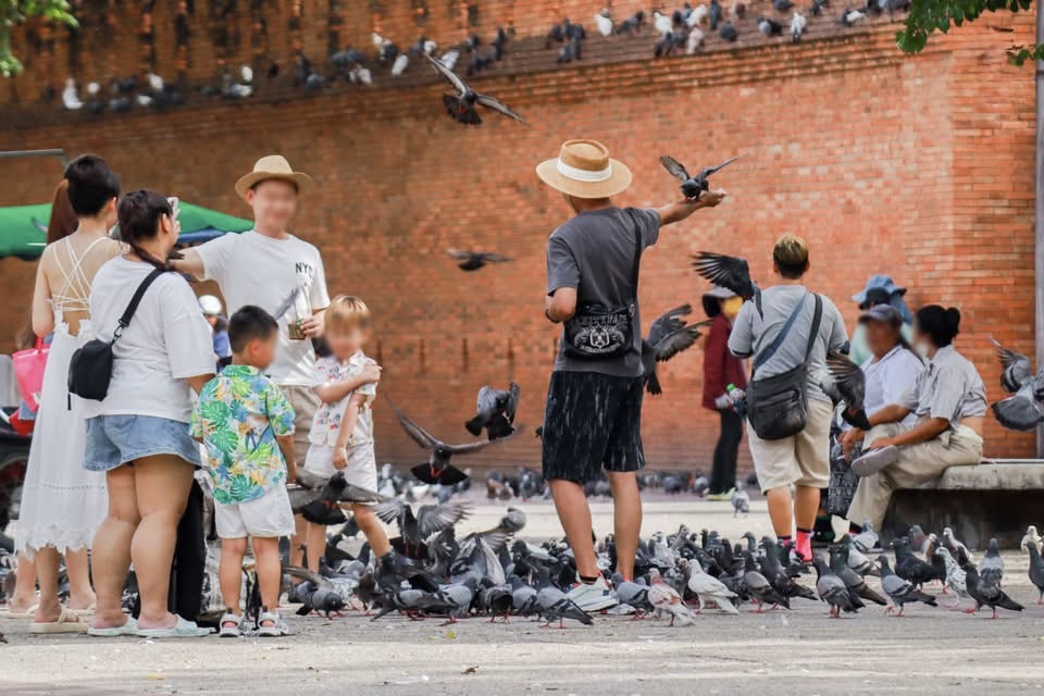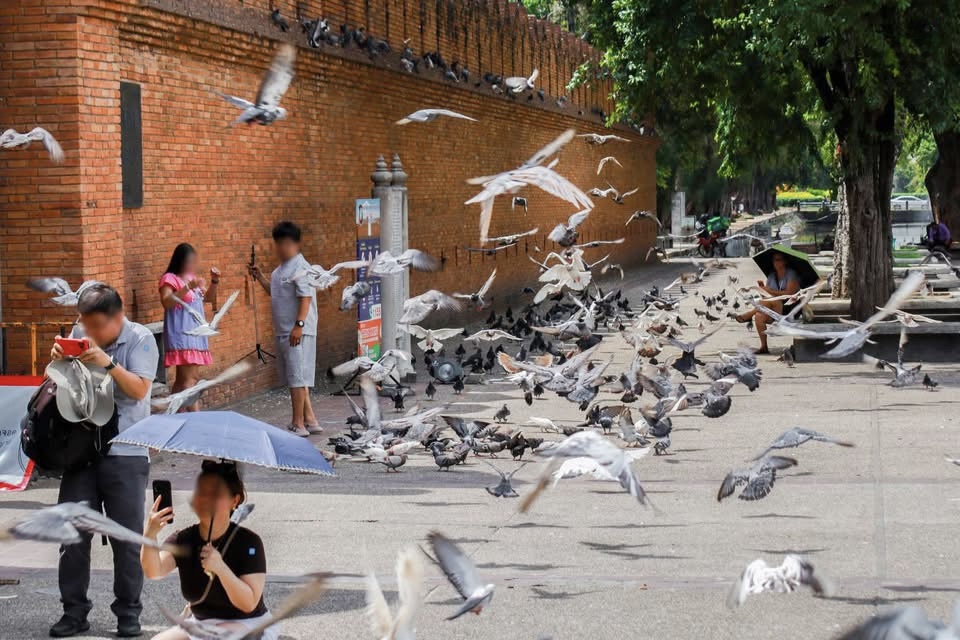 CHIANG MAI: De verkopers van duivenvoer zijn weer terug bij Tha Phae Gate in Chiang Mai, en dat zorgt voor nieuwe zorgen over hygiëne en toerisme. We zagen de groep die eerder was opgepakt weer vrolijk duivenvoer verkopen en toeristen aansporen om foto’s met de vogels te maken. Tegelijkertijd rijst de vraag: wat betekent dit eigenlijk voor de hygiëne?