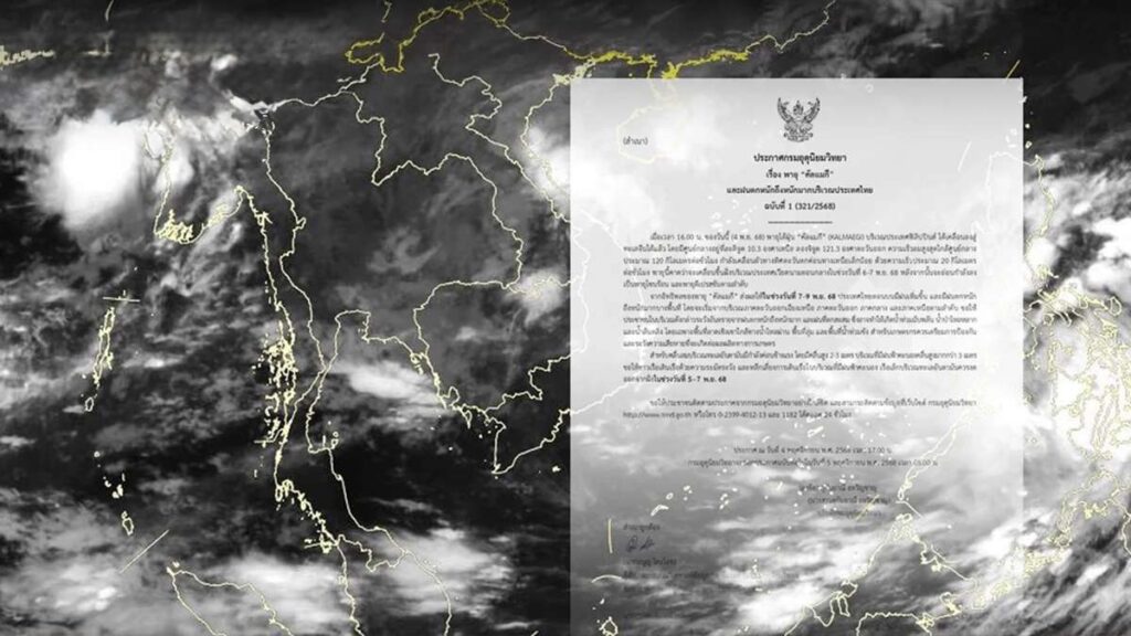 PATTAYA: De tropische storm Kalmaegi is op weg naar Thailand en bedreigt verschillende regio’s van het land met aanzienlijke overstromingen. Het Thais Meteorologisch Instituut (TMD) heeft een waarschuwing uitgegeven voor de periode van 7 tot en met 9 november, waarin zware regenval wordt voorspeld in het noordoosten, oosten, midden en noorden van Thailand, inclusief de hoofdstad Bangkok. Er zijn dringende waarschuwingen afgegeven voor plotselinge overstromingen en rivieren die hun oevers kunnen overschrijden.
