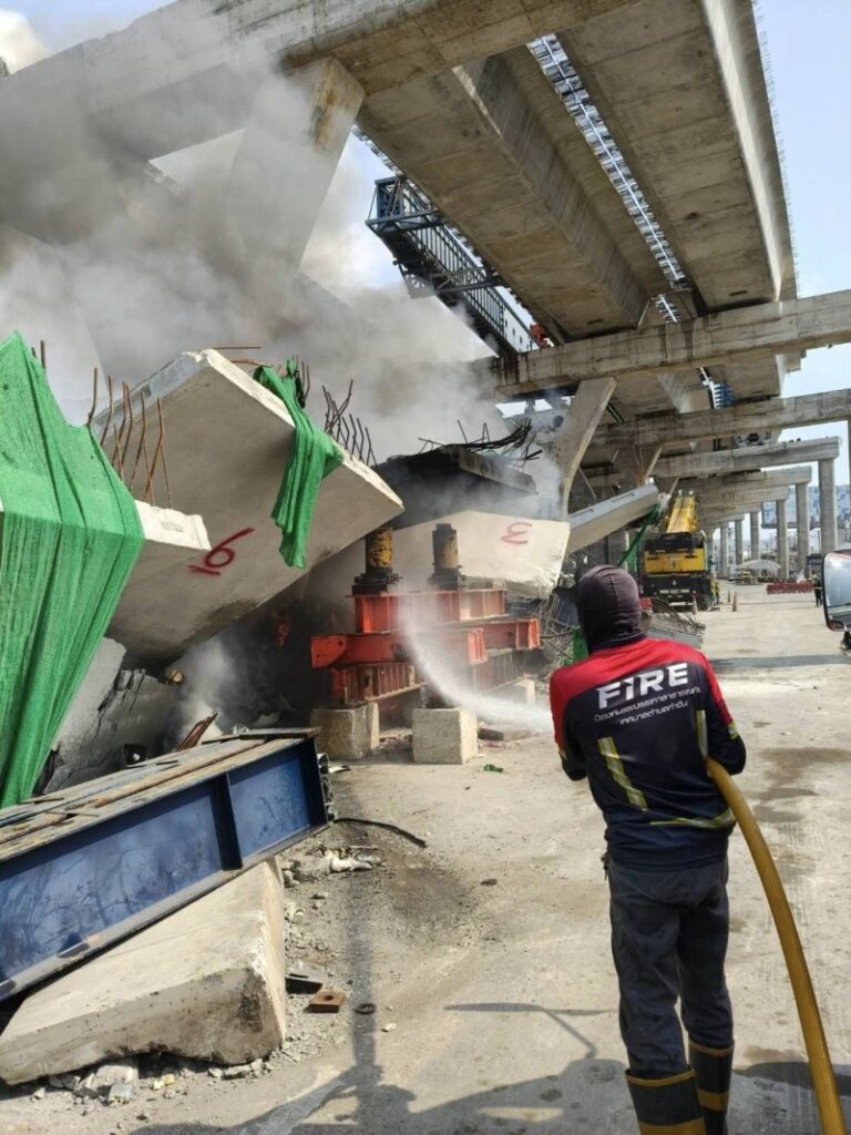 SAMUT SAKHON: De veiligheid van de Rama 2-snelweg staat opnieuw in de schijnwerpers door een brand die vanochtend kortstondig woedde in het wrak van een ingestorte bouwkraan. Het incident vond plaats net buiten de stad, voor het Paris Hotel, rond 10:45 uur.