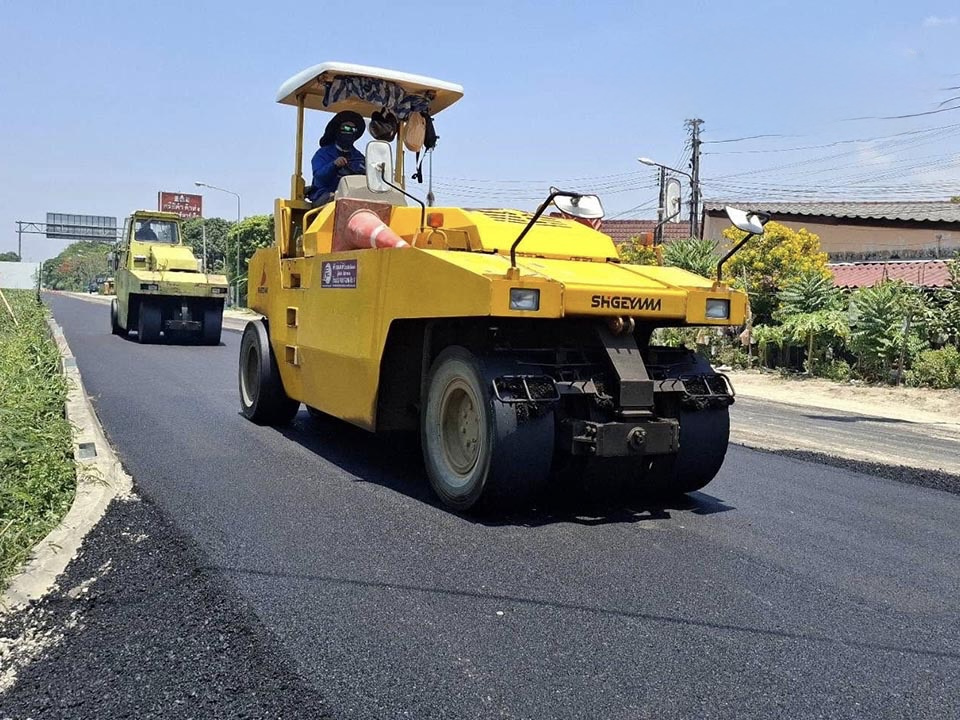 PATTAYA: Gisteren is de aanleg van de eerste asfaltlaag voor het verbeteringsproject van de spoorweg parallelle weg in oostelijk Pattaya voltooid.