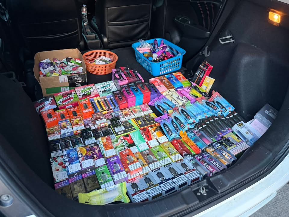 PATTAYA: Onder leiding van het districtshoofd van Banglamung is gisteravond een illegale handel in e-sigaretten opgerold, waarbij de handel vanuit de kofferbak van een auto geheim werd gerund. Ze vielen een winkel in Moo 9, Nong Prue binnen en namen 500 wegwerp-e-sigaretten en 37 coils mee.