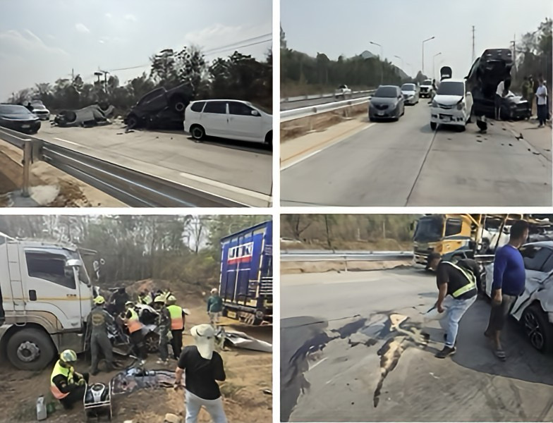 Reddingsdiensten waren snel ter plaatse en probeerden waar mogelijk te helpen, terwijl sleepwagens langzaam de weg vrijmaakten. De 40‑jarige chauffeur uit Phitsanulok is aangehouden voor verhoor; hij zegt te hebben geprobeerd te remmen.