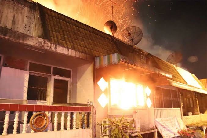 De brand woedde hevig en het huis was gehuld in rook. Hij vluchtte naar buiten om hulp te krijgen van zijn buren. Ze konden de tweede verdieping niet bereiken en probeerden de ijzeren tralies aan de buitenkant van de ramen op de tweede verdieping open te wrikken, maar faalden, meldden Samut Prakan-media. In de andere huizen vielen geen gewonden.