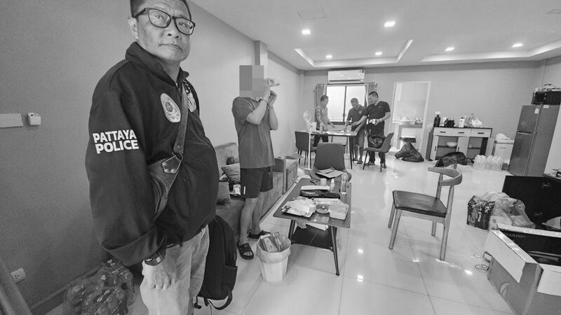 PATTAYA/HUAY YAI: De Thaise politie heeft tijdens een grote actie twee huizen in de omgeving van Pattaya binnengevallen en een volledige drugsfabriek opgerold. Ze ontdekten aanzienlijke hoeveelheden ketamine en crystal meth, evenals de apparatuur die gebruikt werd voor de productie. Eén verdachte werd betrapt terwijl hij probeerde bewijs door het toilet te spoelen. Dit vormt opnieuw een flinke klap voor de lokale drugsmaffia in Pattaya.