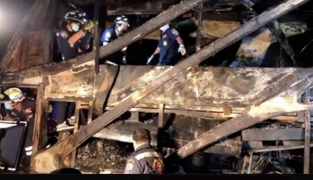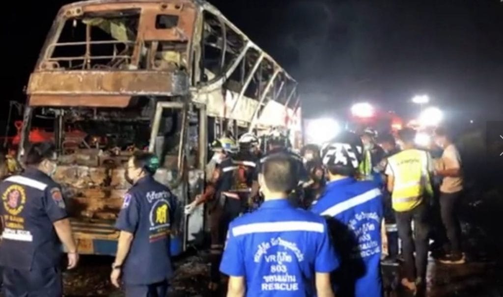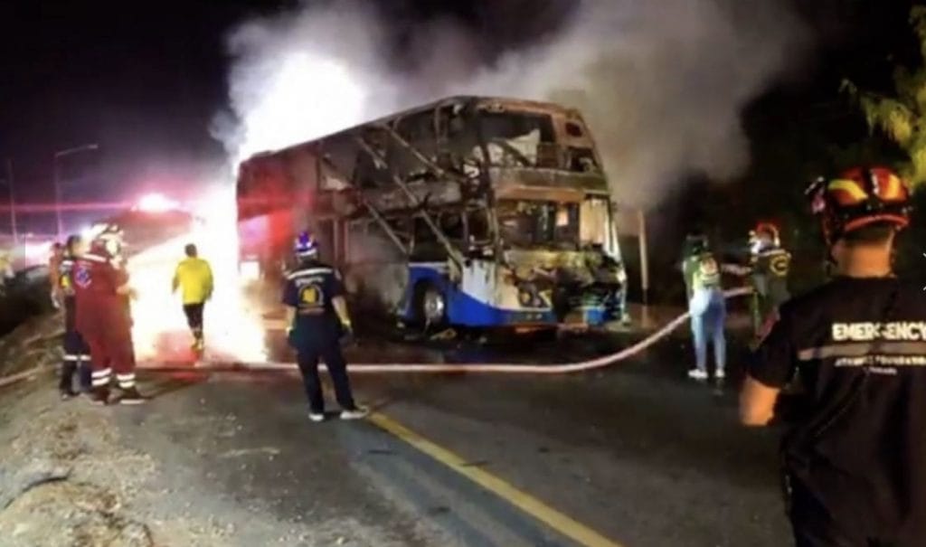 KHON KAEN:- Vijf passagiers zijn om het leven gekomen en 12 anderen raakten ernstig gewond toen gistermorgen vroeg een dubbeldeks bus in vlammen opging. Het drama speelde zich kort na middernacht af op de Mitrapap Highway nabij Nong Kham Village in het hoofddistrict.
