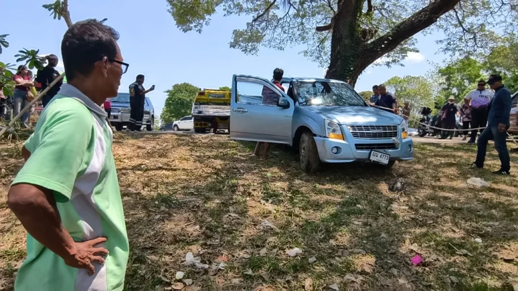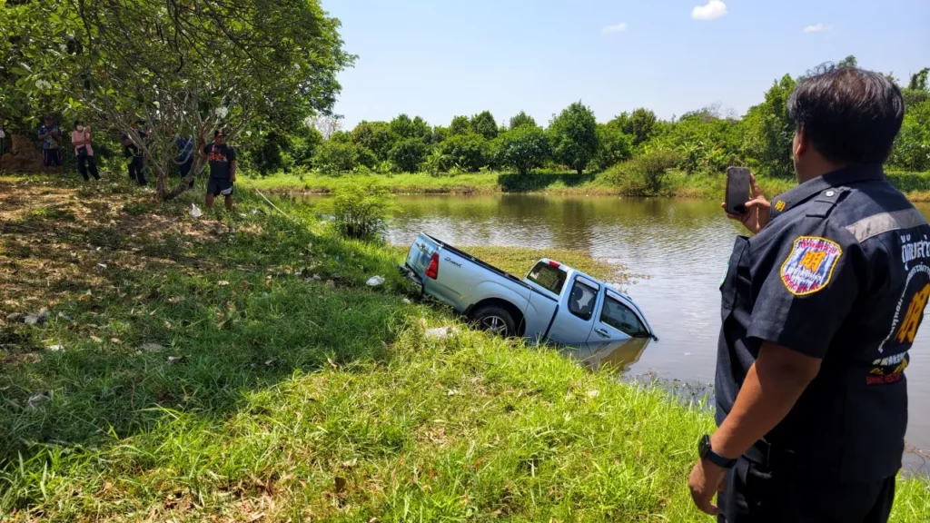 ISAAN: In een onverwachte wending heeft een pick-uptruck vandaag de show gestolen door pardoes in de vijver van het Suan Somdet Phra Srinagarindra Park in Sisaket te belanden. Dit gebeurde terwijl de eigenaar, Khun Jeen Chaisrisah, nietsvermoedend het “Lamduan Flower Festival” bezocht.
