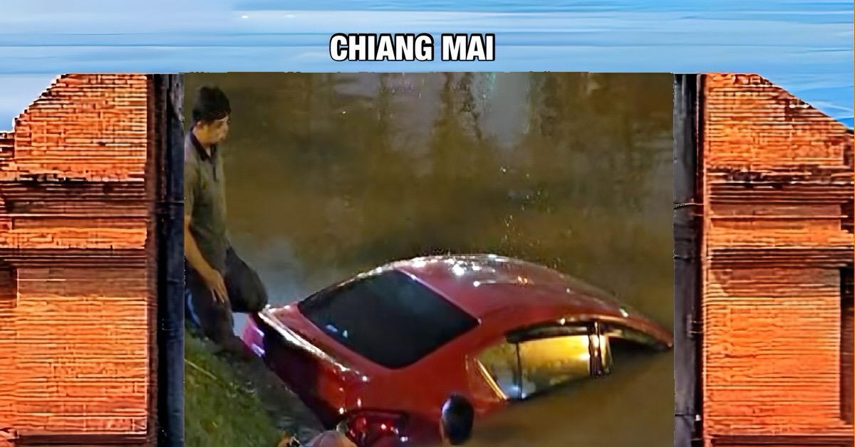 CHIANG MAI: Gisterenavond, tijdens het Loy Krathong-festival, kreeg een Keniaanse lerares een flinke schrik door al het geschreeuw en het vuurwerk van het Yi Peng Festival. Ze raakte helemaal in paniek en reed met haar auto zo de stadsgracht in!
