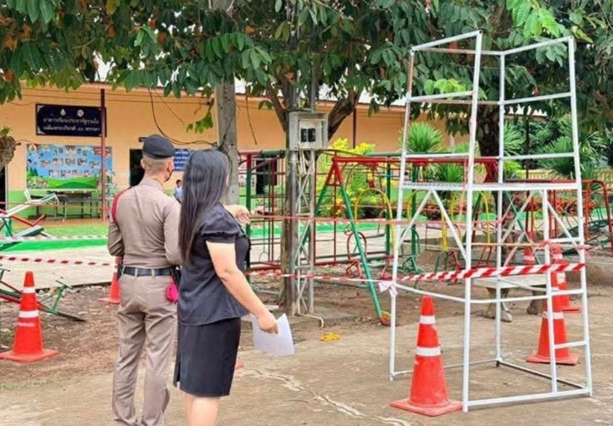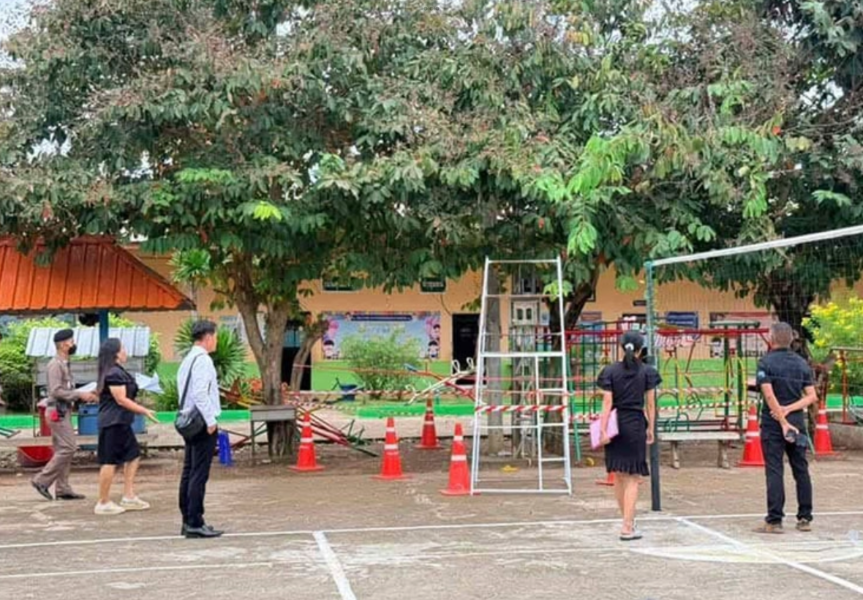 Een kleuter in Noordoost-Thailand is geëlektrocuteerd terwijl hij aan het spelen was op de speeltoestellen van de kleuterschool.