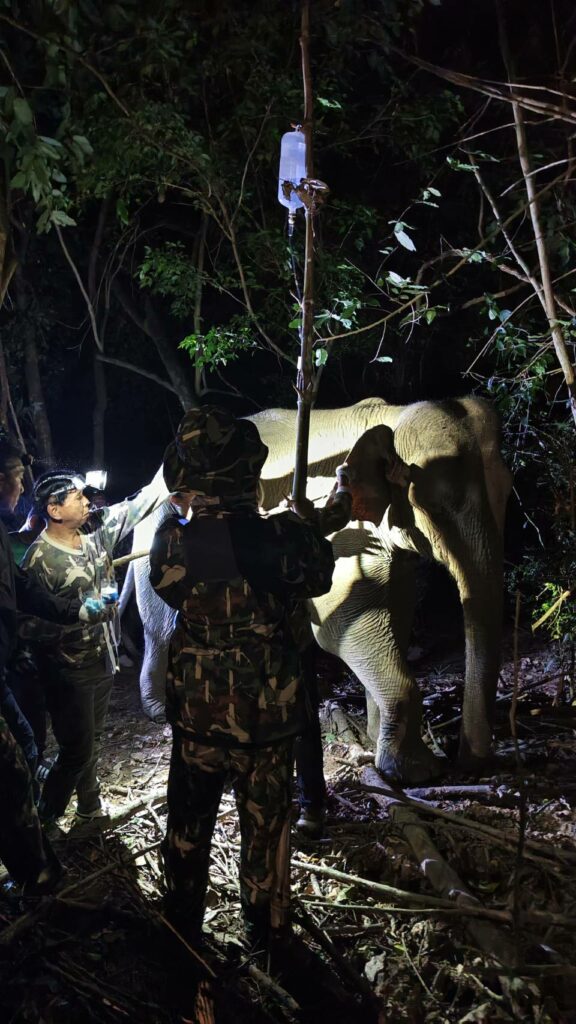 PRACHUAP KHIRI KHAN: In het Kui Buri National Park is een gewonde olifant na dagen van intensief zoeken uiteindelijk gevonden! Deze dikhuid, die een wond op zijn achterbeen had, werd op 24 november met behulp van een drone opgespoord. Het veterinaire team reageerde onmiddellijk en zorgde ervoor dat hij diezelfde nacht weer kon staan en lopen!