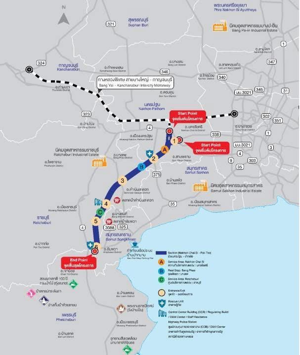 Fase 1 van het project, van Nakhon Pathom naar Pak Tho, is 61 kilometer lang en gaat zo’n 61,15 miljard baht kosten. De bouw begint dus in 2027, en we hopen dat het in 2031 klaar is. Fase 2, die van Pak Tho naar Cha-am gaat (48 km), wordt nu opnieuw bekeken om ervoor te zorgen dat de inwoners van Phetchaburi er geen last van hebben. Die nieuwe route moet in 2026 klaar zijn en gaat daarna naar het kabinet voor goedkeuring.