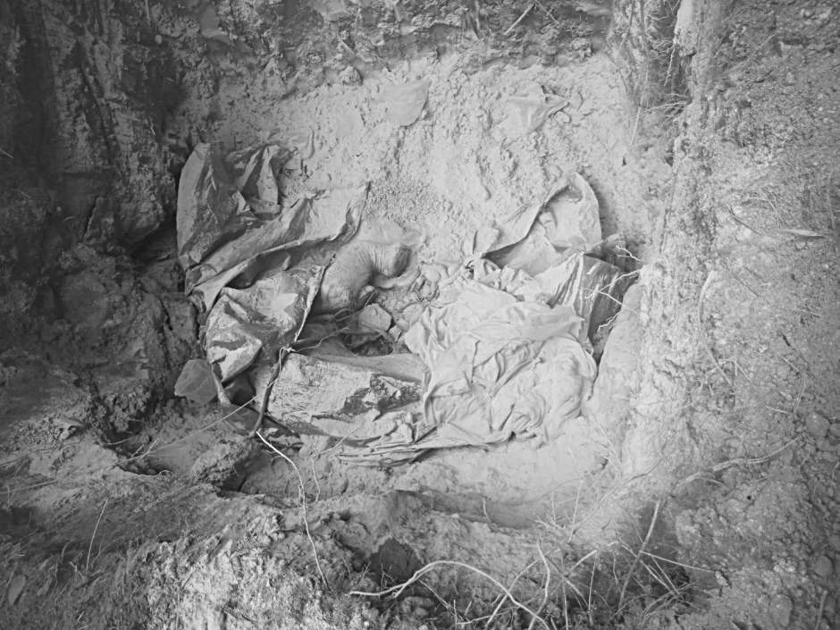 Na de autopsie hebben ze het karkas van de babyolifant netjes begraven en met kalk bestrooid om het op een goede manier af te handelen.