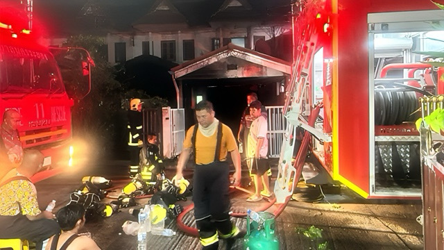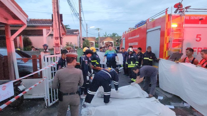 Om half drie vanmorgen ontving politie-inspecteur Majoor Chaiakrit Teurath een melding van een brand in vier aan elkaar gebouwde huizen in Soi Thangphai 2, in de gemeente Rayong. Hij ging samen met kolonel Arith Yakhaew, de hoofdcommissaris van de politie in Rayong, en lokale autoriteiten naar de locatie van de brand en alarmeerde de brandweer van de gemeente Rayong om het vuur te blussen.