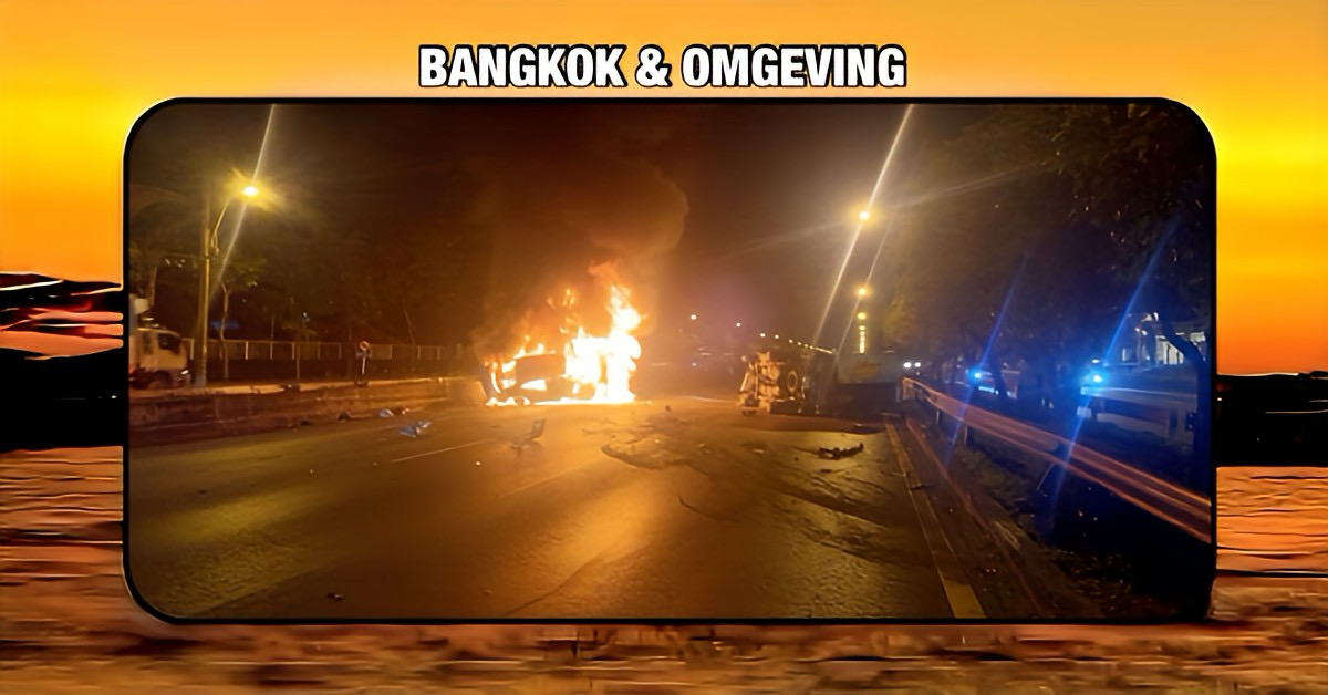 BANGKOK:- Een aanrijding tussen drie snelheidsduivels op vier wielen, waaronder een Ferrari en een Mercedes-Benz, resulteerde in een verwoestende brand op Borommaratchachonnani Road in het district Thawi Watthana De Ferrari, met een waarde van ongeveer één miljoen dollar, werd volledig verwoest.