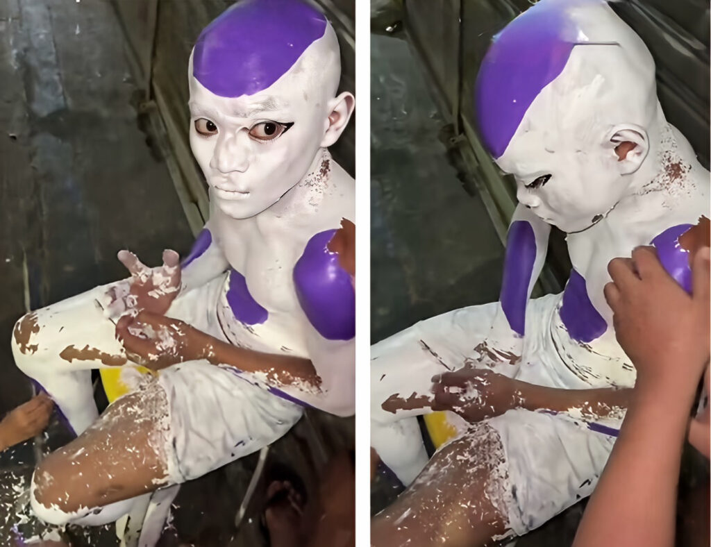 FILEPIJNEN: Een Filipijnse jongen verkleedde zich als Freezer uit Dragon Ball, maar was stomverbaasd toen de verf — bleek latexverf te zijn, er niet af wilde. De hele familie werd opgetrommeld om hem te helpen. Volgens buitenlandse media nam de jongen deel aan een cosplay-evenement en verkleedde hij zich opzettelijk als de schurk Frieza uit de populaire anime Dragon Ball.