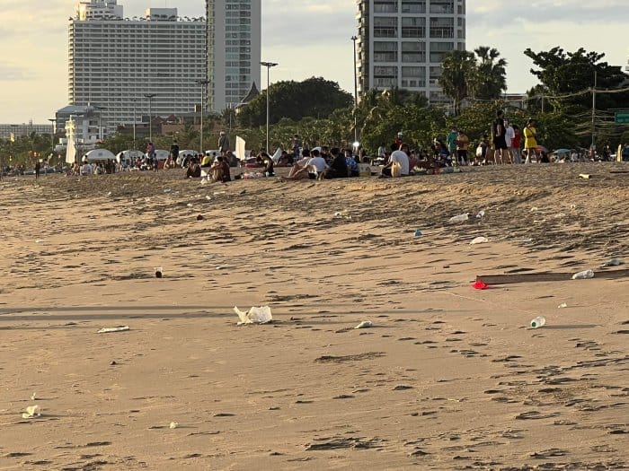 De Thaise Khun Orapan Saehiw uitte haar woede op de wanaan Facebook-groep. Ze drong er bij haar landgenoten op aan – heel goed wetende dat het probleem zich meestal beperkt tot lokale bezoekers – om hun afval op de juiste manier in de vuilnisbakken langs Jomtien Beach Road te deponeren, in plaats van de restjes en wegwerpborden op het strand achter te laten: