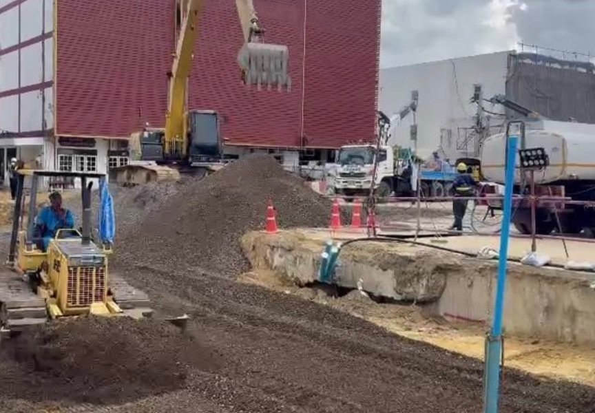 BANGKOK: Het herstel van zinkgat voor Vajira ziekenhuis aan de Samsenweg gestaag, volgens de laatste update van de Mass Rapid Transit Authority of Thailand (MRTA). Ze zijn nu bezig met het storten van 175 kubieke meter stenen na het vullen met zo’n 9.400 kubieke meter zand.