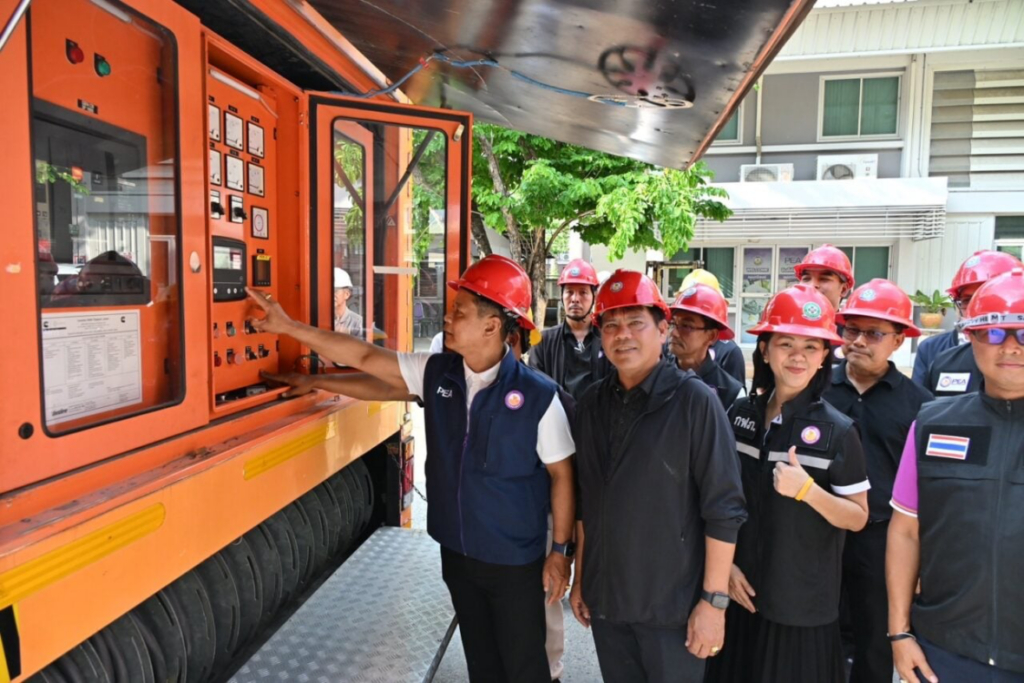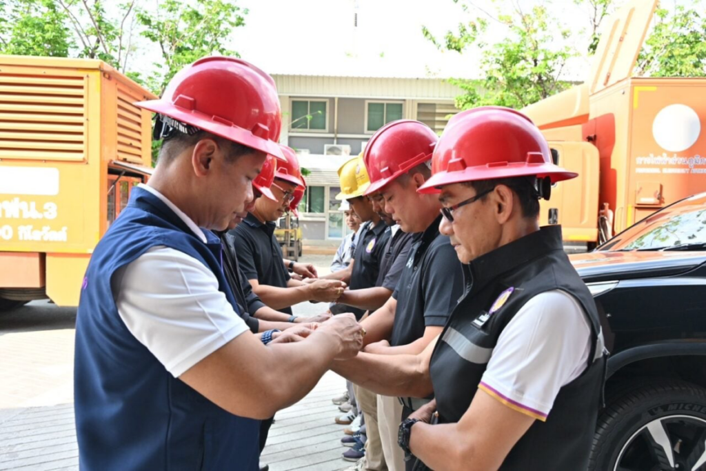 Voor vertrek inspecteerde Thanatkit Nuam-in de voertuigen en benadrukte hij het belang van veiligheid en strikte naleving van de procedures tijdens de reis vanuit Surat Thani.
