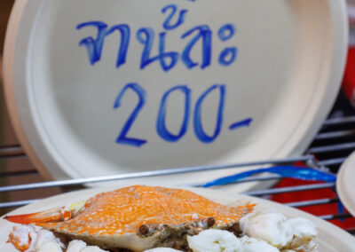 Langs de boulevard worden kraampjes met verse zeeproducten en traditionele Thaise gerechten uit de provincie Phetchaburi opgesteld. Bezoekers kunnen rekenen op een breed aanbod aan krabgerechten, van gestoomde krab tot pittige salades en authentieke zeevruchtenrecepten bereid door lokale verkopers.
