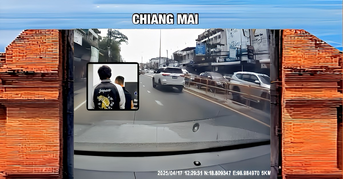 De 26-jarige Khun Amornthap Boonsri schopte een motorfiets omver, waardoor de berijder drie gebroken ribben opliep. Dit gebeurde nadat hij was afgesneden op de weg.