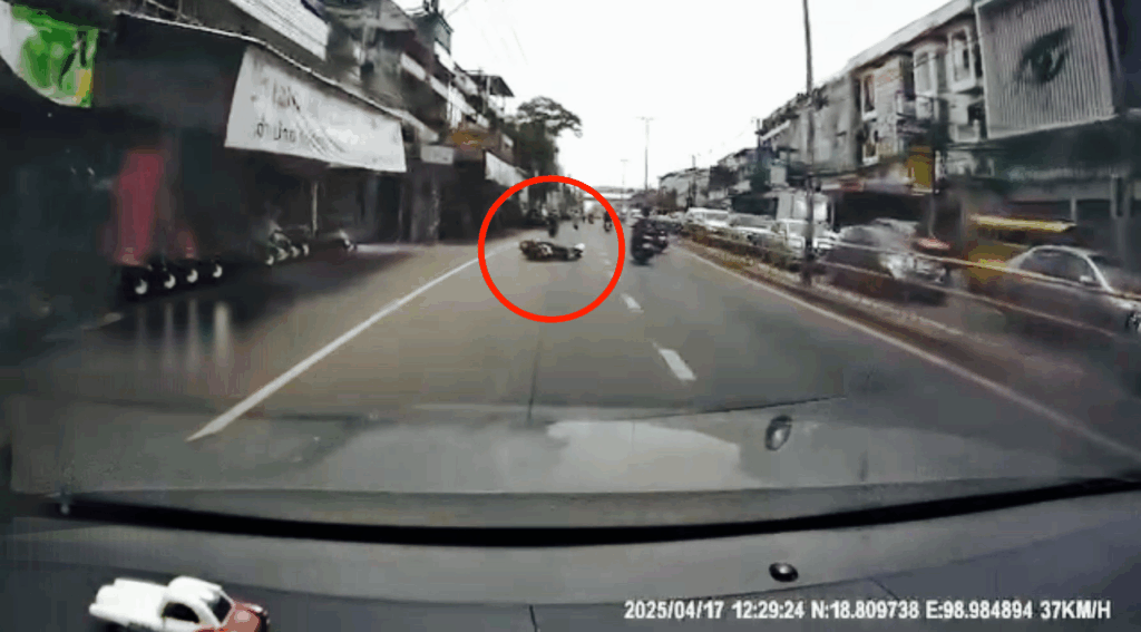 De 26-jarige Khun Amornthap Boonsri schopte een motorfiets omver, waardoor de berijder drie gebroken ribben opliep. Dit gebeurde nadat hij was afgesneden op de weg.