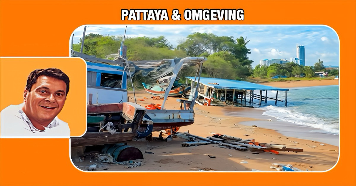 PATTAYA:- Ban Amphoe Beach in Na Jomtien heeft te maken met een trieste realiteit: meer dan twintig verlaten of beschadigde vissersboten en wrakken van excursieboten liggen verspreid langs de kust. Wat ooit een prachtig panorama was, is veranderd in een scheepskerkhof vol kleurrijk afval, zoals visnetten, plastic flessen en houtresten, die een uniek, maar somber beeld scheppen.