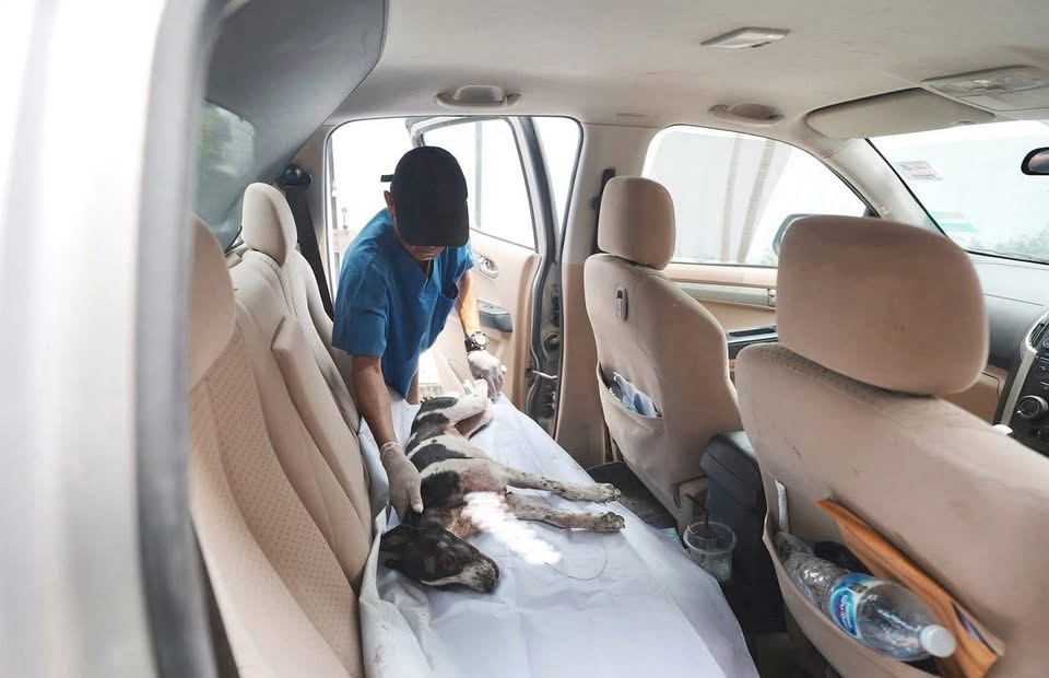 PATTAYA: Op een open veld in Pattaya werd een zwaargewonde zwerfhond aangetroffen, die met pijlen was beschoten. Zorgzame burgers merkten het dier snel op en meldden het voorval onmiddellijk bij de autoriteiten.