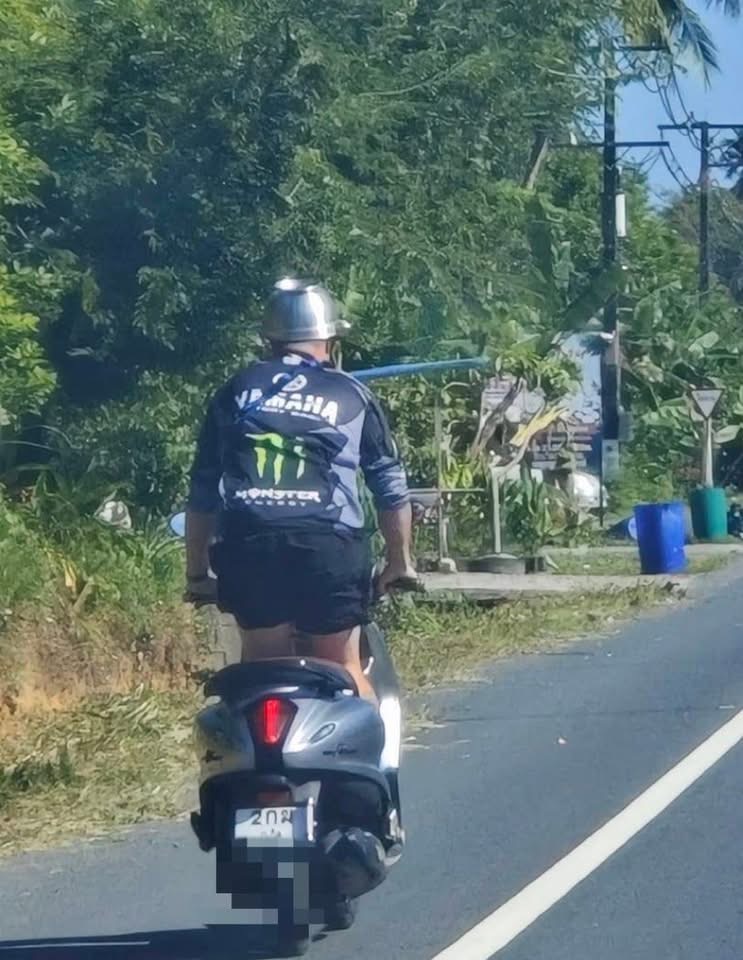 PHUKET: Een buitenlander in Phuket heeft de social media in vuur en vlam gezet door over het eiland met een soeppan op zijn hoofd in plaats van een helm te rijden. De foto’s, gepost door The Phuket Times, tonen de rijder op een grijze motor, trots met zijn glanzende aluminium hoofddeksel. Dit vreemde tafereel zorgde voor veel hilariteit en wat bezorgdheid.